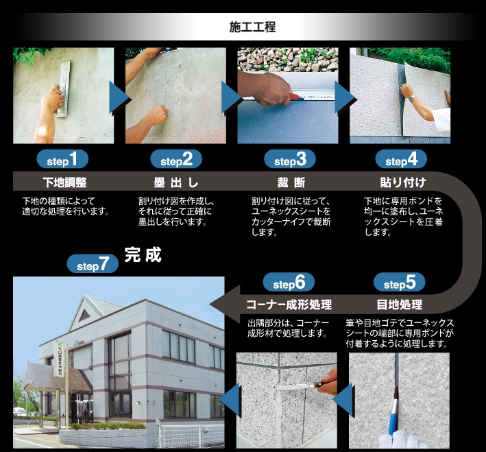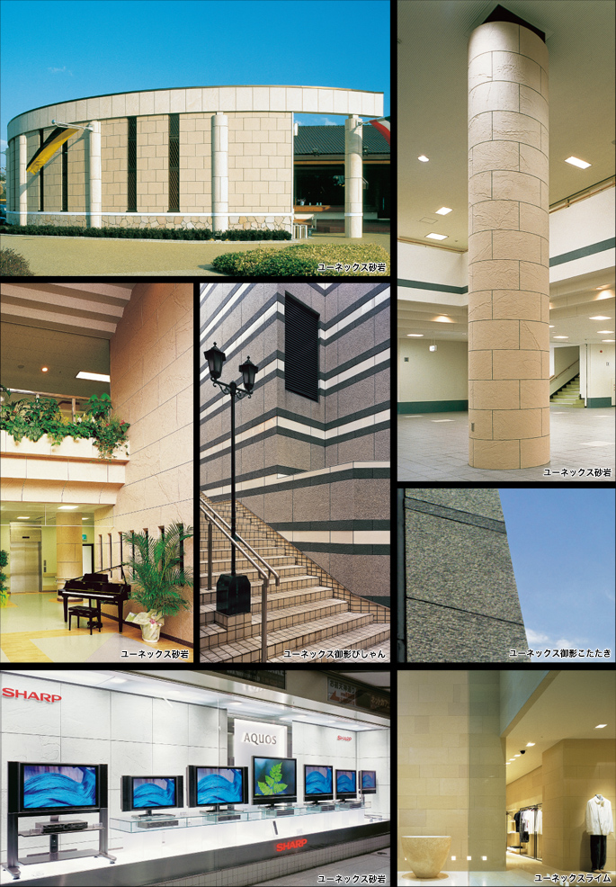■ユーネックスは石の持つ魅力はそのままに、石よりも簡単で手軽に扱えるようにした貼る石材調シート内外装仕上材です。