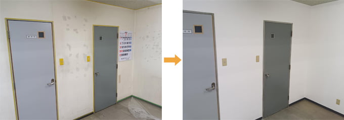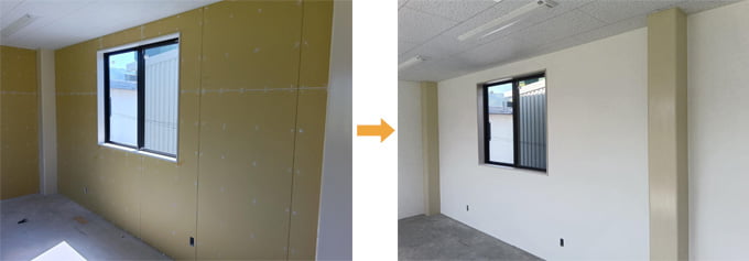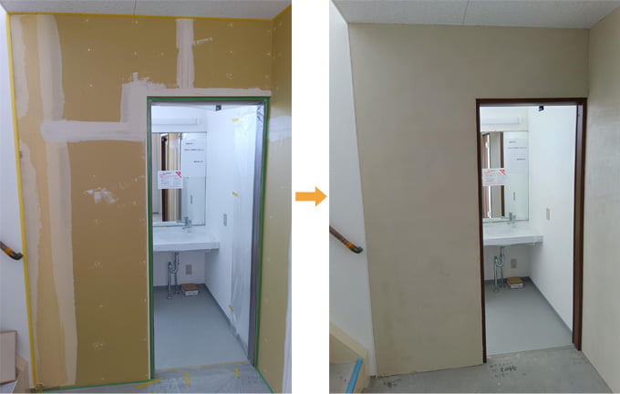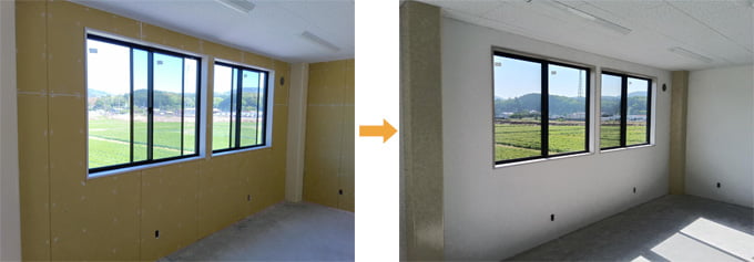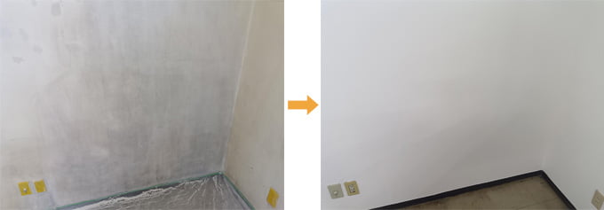 下地は石膏ボード。目地処理後、水性カチオンシーラーを塗布し、しっくのんを上塗り(2~3回)。