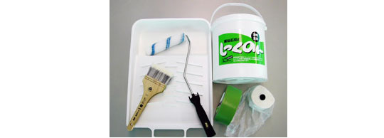 用意するものもローラー、刷 毛、養生テープ(マスキングテープ・マスカー)、バケットだけですのでお手軽です。またホームページでもQ&Aや施工ムービーなども詳細にご紹介しております。