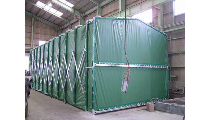 塗装ブースや防音、防塵など作業環境に応じた活用にも発揮します。シートも用途に合わせ透明糸入りや不燃など選べます。頑丈なフレームによる伸縮機構で、長期にわたり使用出来ます。