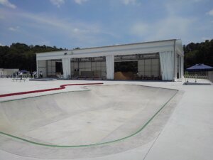 テントで全天候型アーバンスポーツ施設を