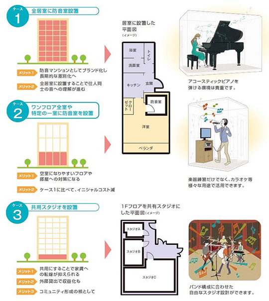 防音マンションの入居者は社会人趣味層がメイン(当社調べ)。必ずしも音大生がターゲットではない。