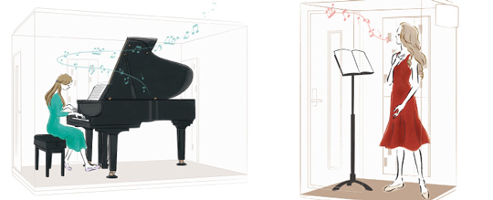 美しい音を味わうには、ただ音を遮ることだけでなく、美しい音が心地よく聞こえる「音の環境づくり」が必要となります。ヤマハの防音室は、防音と音場を設計できる「自由設計」、遮音と音場を兼ね備えた空間を手軽に実現、移設も可能な「定型タイプ」、そして防音室の用途を拡げる不燃対応などの「業務用シリーズ」まで、お客様のニーズに合わせた防音室をご用意しております。