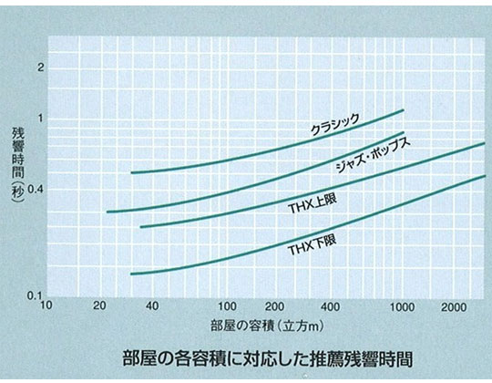 ・平均吸音率を測定することにより求められる残響時間から、その環境に適した音楽を分類することができます。