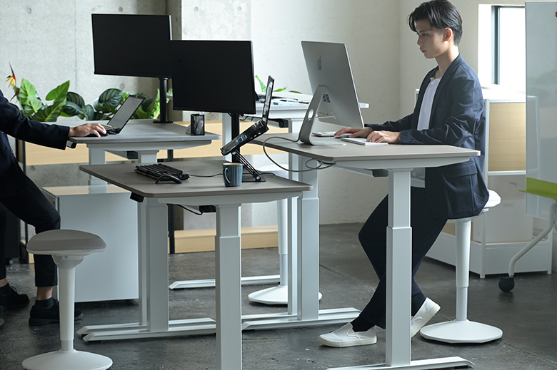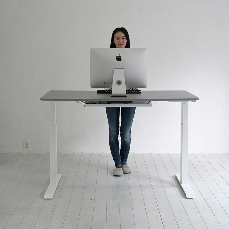 ●ワンタッチで高さを自由にセットできる電動昇降デスク
