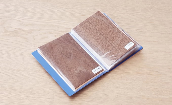 施工や制作時によく使用されるツキ板を、便利なハガキサイズのファイルに集めた商品です。