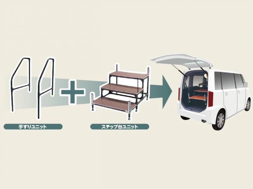 ステップ部と手すり部は、分解できるので小型車での運搬、納入も可能です。