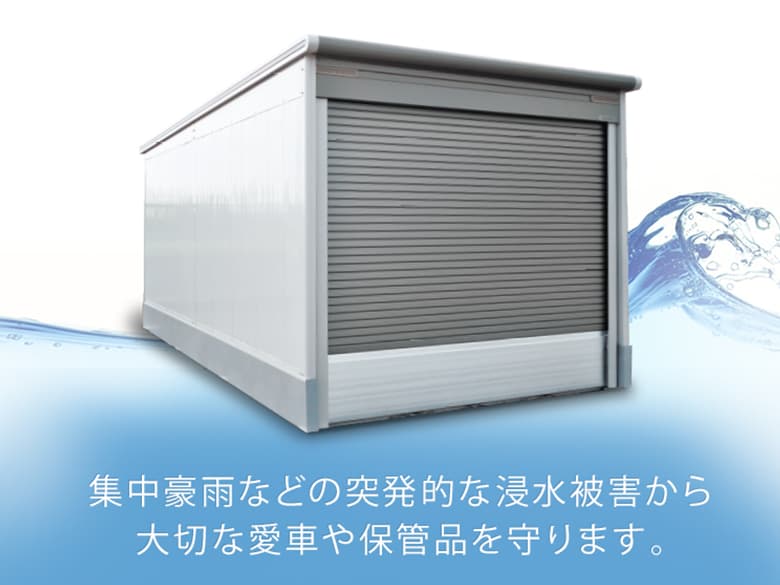 集中豪雨などの突発的な浸水被害から大切な愛車や保管品を守ります。