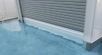 シャッターを閉めるだけで止水板が土間の段差部に密着し、止水性能を発揮。止水パネル設置など二次動作が不要です。一般的な止水板の要求性能の20ℓ/㎡・h(※)をクリアしており、400mmまでの水位に対して庫内への浸水を抑制します。