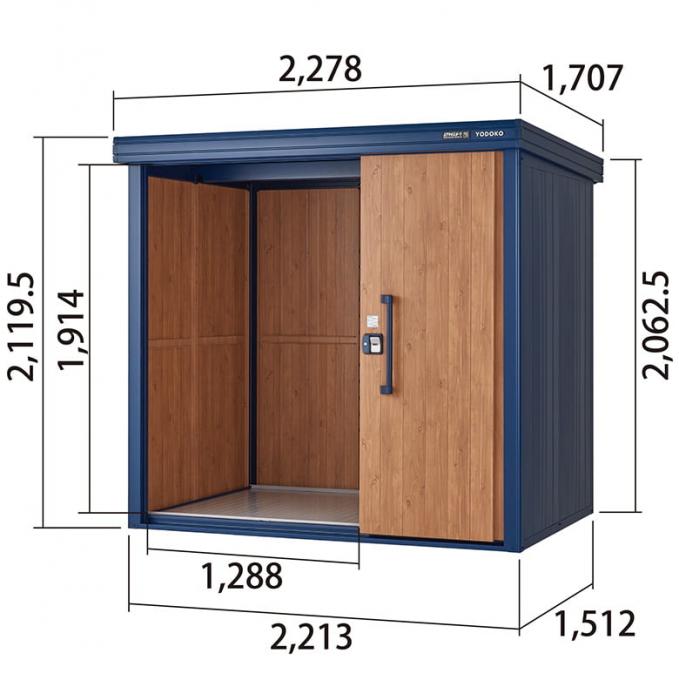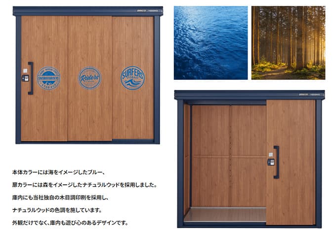 本体カラーには海をイメージしたブルー、扉カラーには森をイメージしたナチュラルウッドを採用。庫内にもヨドコウ独自の木目調印刷を採用し、ナチュラルウッドの色調を施しています。外観だけでなく、庫内も遊び心のあるデザインです。