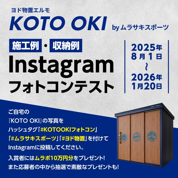 2025年に創立90周年を迎えた「ヨドコウ」こと淀川製鋼所とムラサキスポーツは、コラボレーション・アイテムとして、新たなスタイルの物置『ヨド物置エルモ KOTO OKI by ムラサキスポーツ』を 受注生産にて販売いたします。