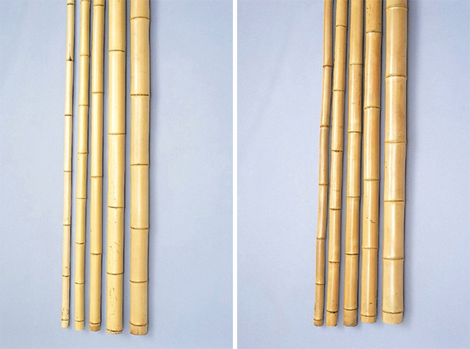特殊な薬剤で竹の油分を抜いた最もポピュラーな竹材です。用途は内装材や竹垣、装飾品など様々です。