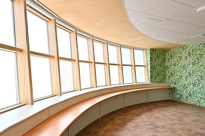 病院をはじめとする各施設の運営管理や人材採用等の運営に携わる方々や訪れる方々が、棟内の様々な場所で、五感を使って木を感じながら、心地よくお過ごしいただける空間となっています。