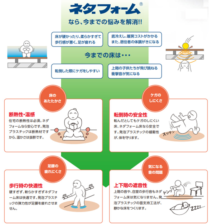 様々な悩みを解決! 断熱性床下地材「ネダフォーム®」をご紹介