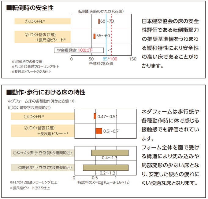 快適な歩行感と床の転倒衝撃力緩和特性によりお年寄りや幼児にも優しい!