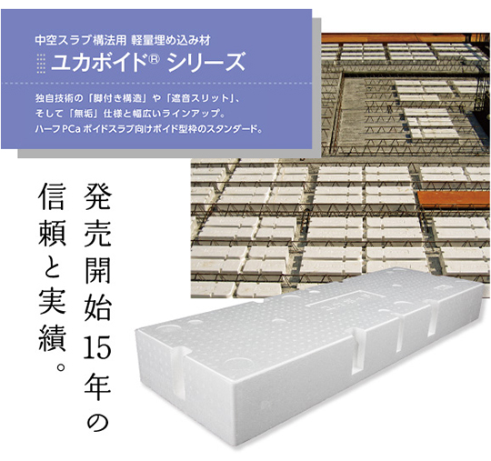 優れた遮音性を実現、中空スラブ工法用軽量埋込材ユカボイド