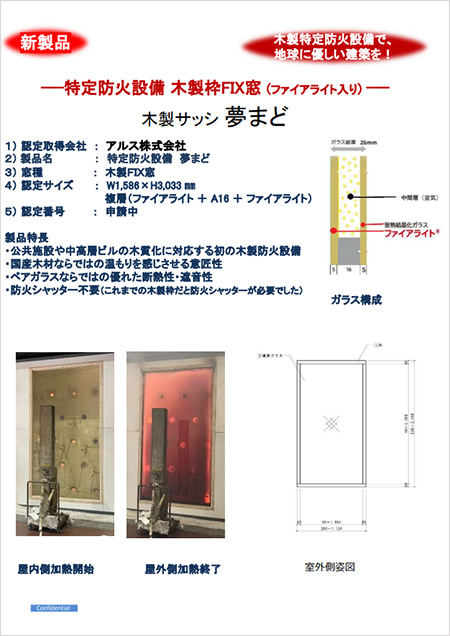 この度、—特定防火設備 木製枠FIX窓 (ファイアライト入り)木製サッシ 夢まどの発売を開始いたしました。