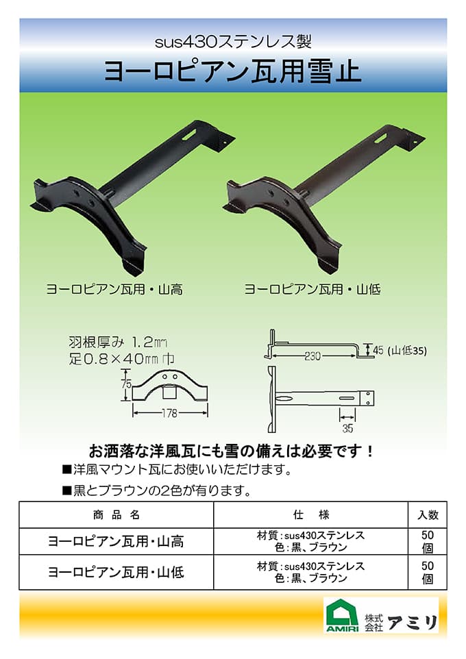 ヨーロピアン瓦用雪止