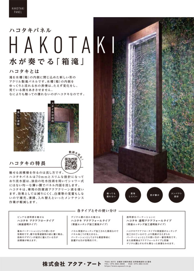 ■流水面をライトアップすることでより水模様が際立ち存在感が増します。エッチングが映える重厚間溢れる滝