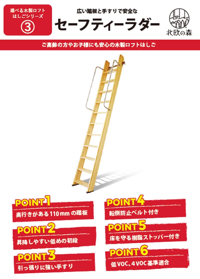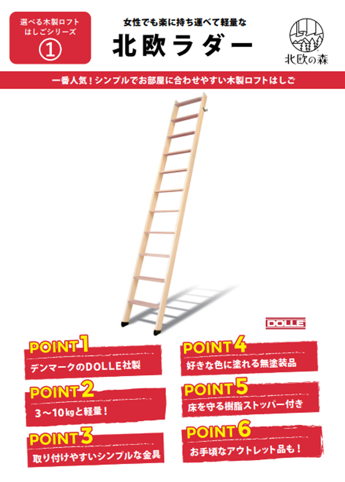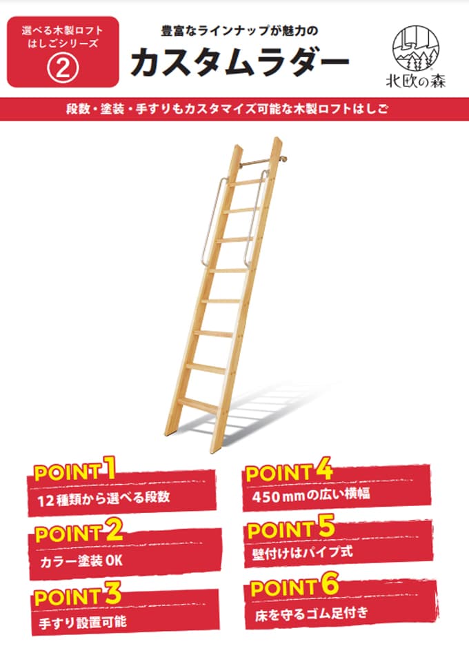 ■8段206cm~12段306cm(5種類)ありそうでなかったシンプルな木製ロフト梯子