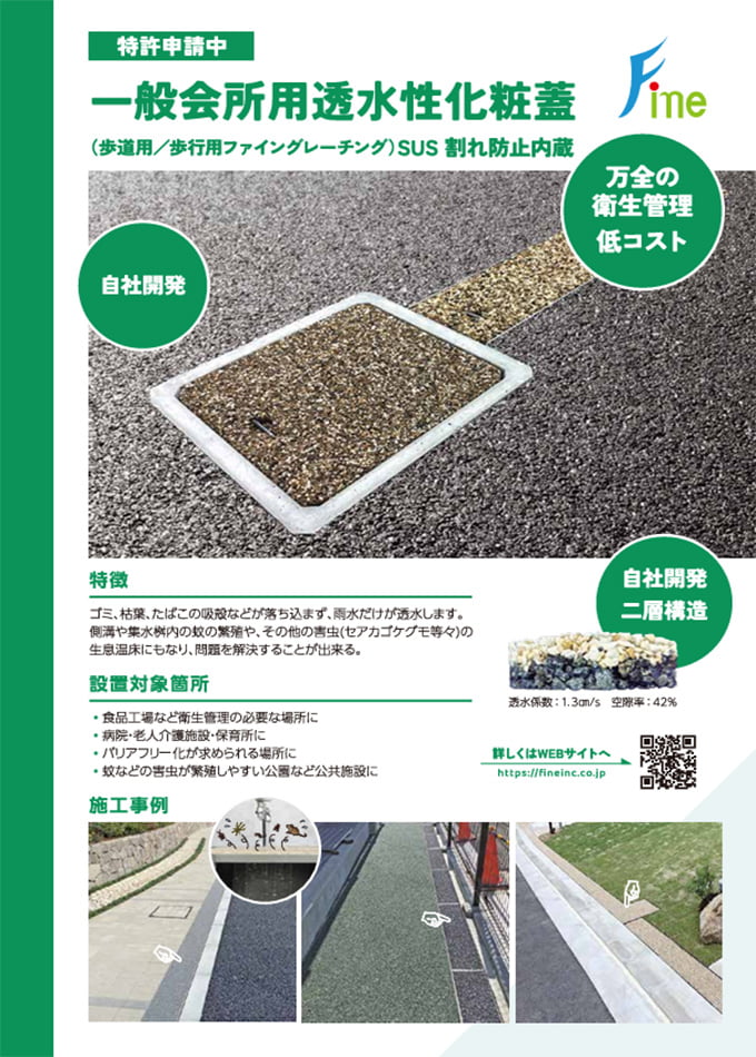 【特許申請中】透水性化粧蓋(ファイングレーチング)