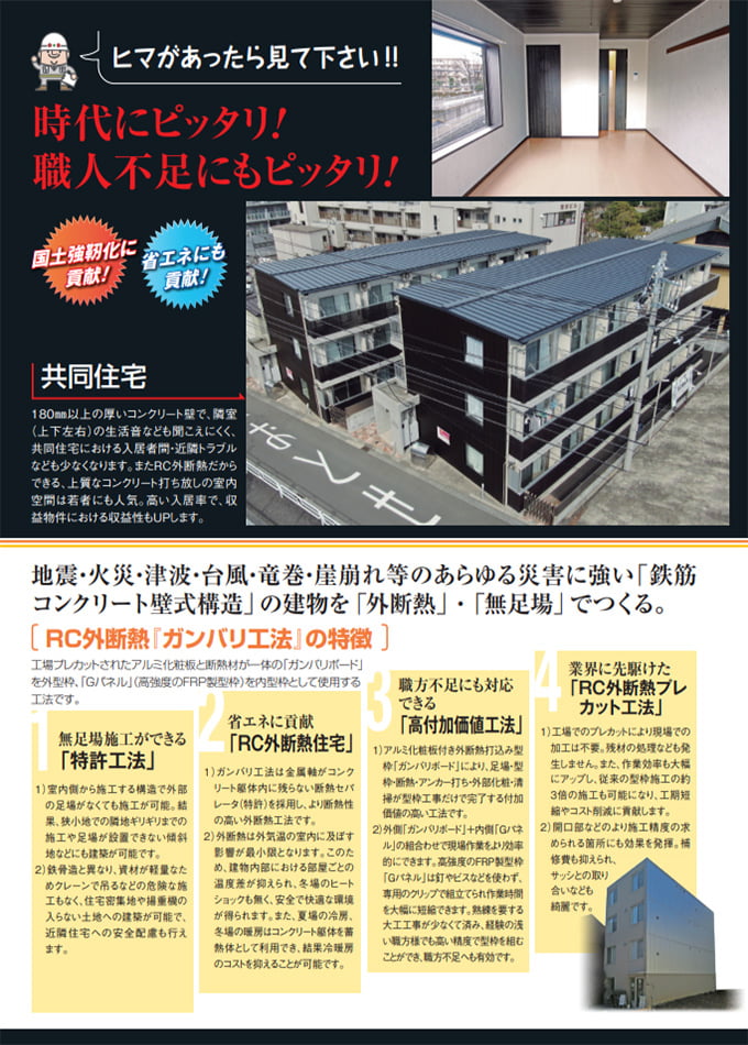 http://www.ganjitsu.co.jp『地震・火災・台風・津波等のあらゆる災害に強い』高性能な鉄筋コンクリート壁式構造を「外断熱」・「無足場」でつくる