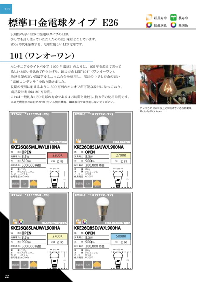 寿命のボトルネックとなっている部品を取り除いた事によって世界最長クラスのLED電球となっています。=10年保証
