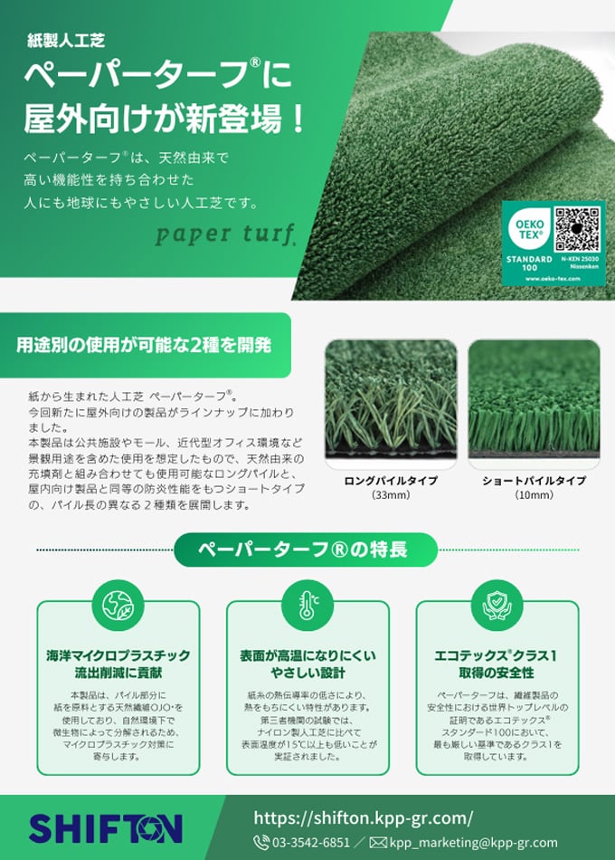 【次世代の人工芝】「紙」から生まれたペーパーターフ|マイクロプラスチックを削減し肌触り柔らかく熱くなりにくい人と地球にやさしい素材です。