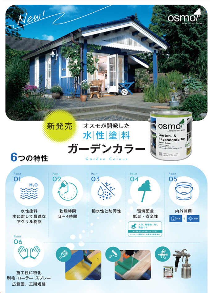 オスモが開発した【水性】木材保護塗料「ガーデンカラー」