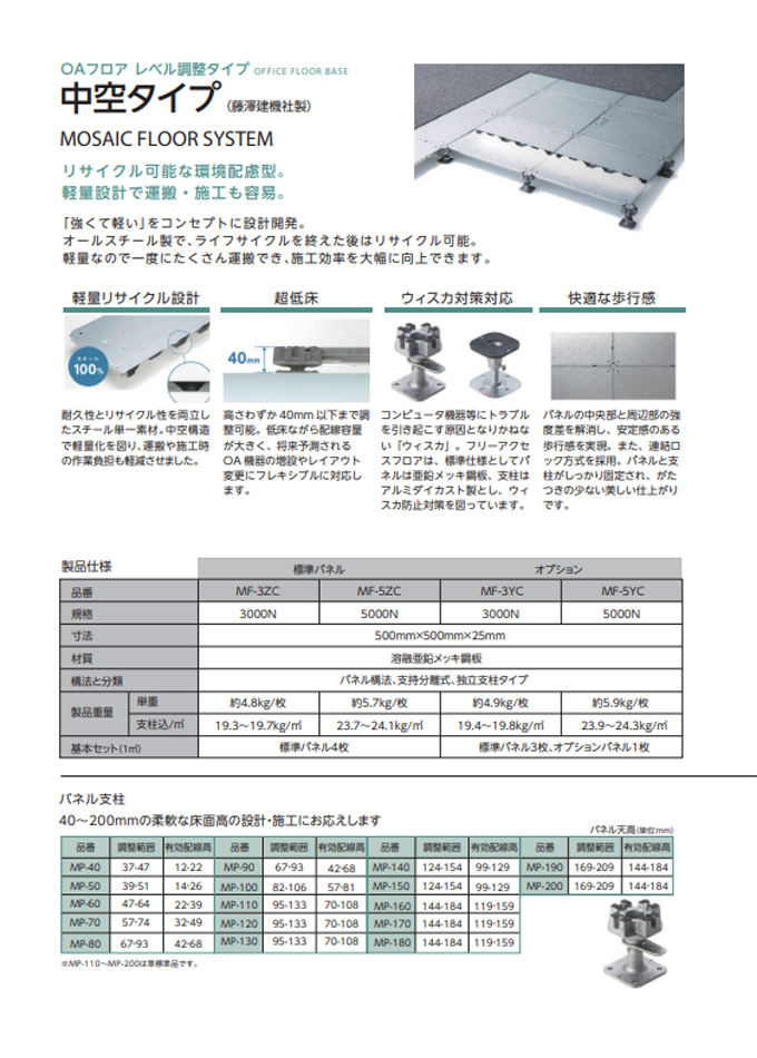OAフロア レベル調整タイプ 中空タイプ/軽量モルタル充填タイプ