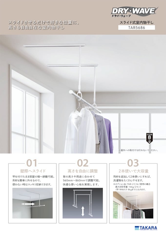 DRY・WAVEシリーズ<室内物干金物>「TAR スライド式室内物干し」(TAR5686)