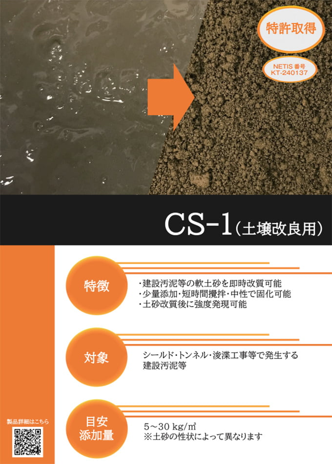 【軟弱土砂改質】環境配慮型中性固化剤「CS-1」【施工効率促進】
