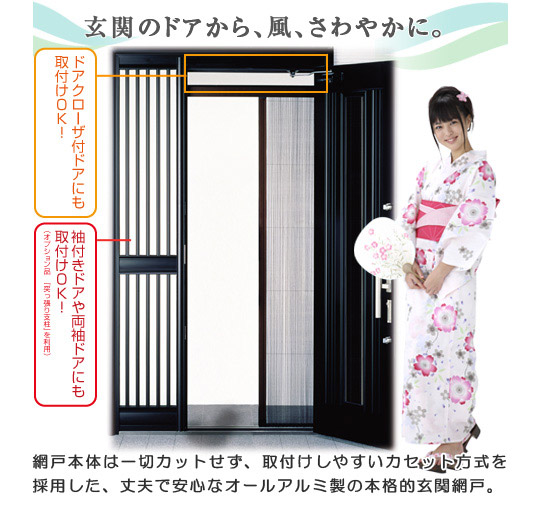 バリアフリータイプのオールアルミ製高級玄関用網戸