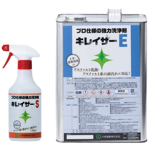 ■キレイザーE…アスファルト乳剤や機械油などの頑固な油汚れに