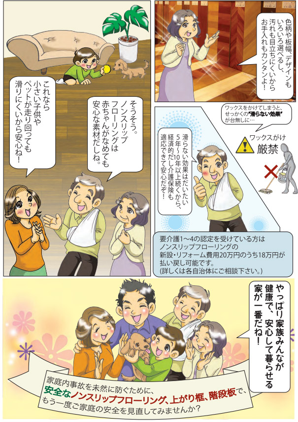 家庭内事故を未然に防ぐために、安全なノンスリップフローリングをオススメします。