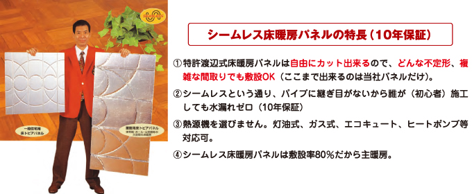 簡単…シームレス床暖房は、放熱板と耐熱素材を一体化した「床トピアパネル」の簡単施工。
