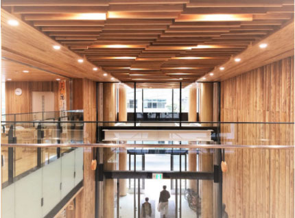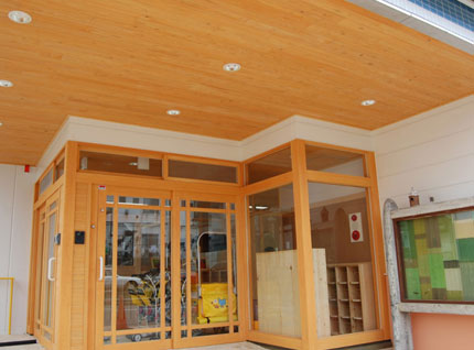 溶脱・白華の性質上内装用に限定された不燃木材ですが、低吸湿性不燃木材と弊社独自の塗装との組み合わせで一部外部での使用も可能になりました。