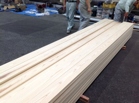 不燃木材の加工、塗装は新木場の工場で木材加工のプロが行います。