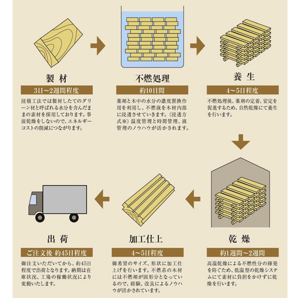浸漬方式で製造した国土交通大臣認定 不燃木材/準不燃木材