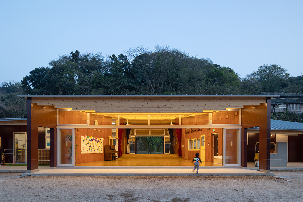 この保育園の最大の特長は、広場を囲むコの字型平面の屋根部分が大きな螺旋階段状の屋上広場になっており、子どもたちの遊び空間になっていると同時に、海抜ゼロメートルの近隣にとっての一時待機所にもなっている点にある。この骨太の空間計画を無理のない動線計画や管理計画と両立させ、丁寧に設計された細部で具体化した点は、個別性の強い地域施設としての保育園の設計例として高く評価できる。