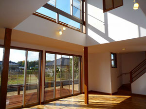 窓などの開口部を有効な大きさ・位置に配置し、太陽の光・熱・風を室内に取り入れることによって、化石燃料を出来るだけ使わないようにすることが大切。人間の生活リズムは朝日を見ながら目を覚まし、夕日が沈む頃には仕事を終えて、一日の疲れを癒すという生活が理想だといわれています。