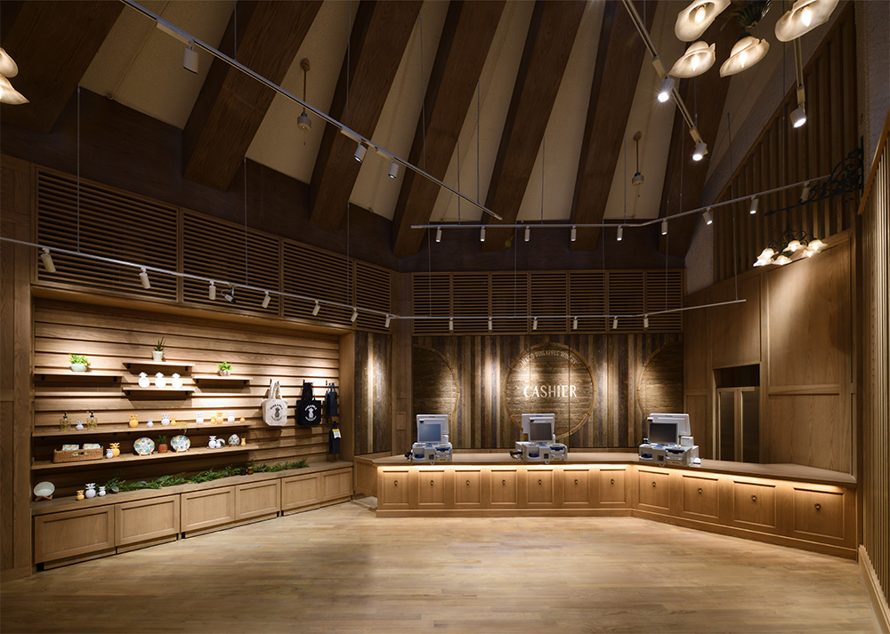1979年にオープンしたお土産施設のリノベーションを行いました。新たな顧客層を獲得するため、歴史を受け継ぎながらブラッシュアップし、今後さらに愛されるようなテーマパークを象徴する新たな、沖縄の次の100年を象徴する空間を創造しイメージした空間です。
