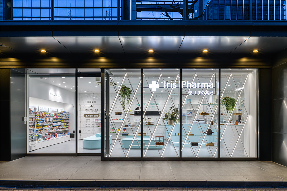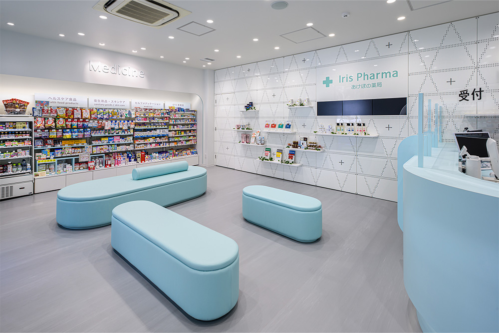 あけぼの薬局神田店は地域密着型の調剤薬局として機能性とホスピタリティを両立させつつ、都市型店舗としての旗艦性を意識した計画。インテリアは白とペールブルーを基調に、開放感と清潔感を備えた柔らかな構成でまとめられています。