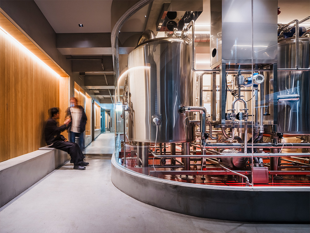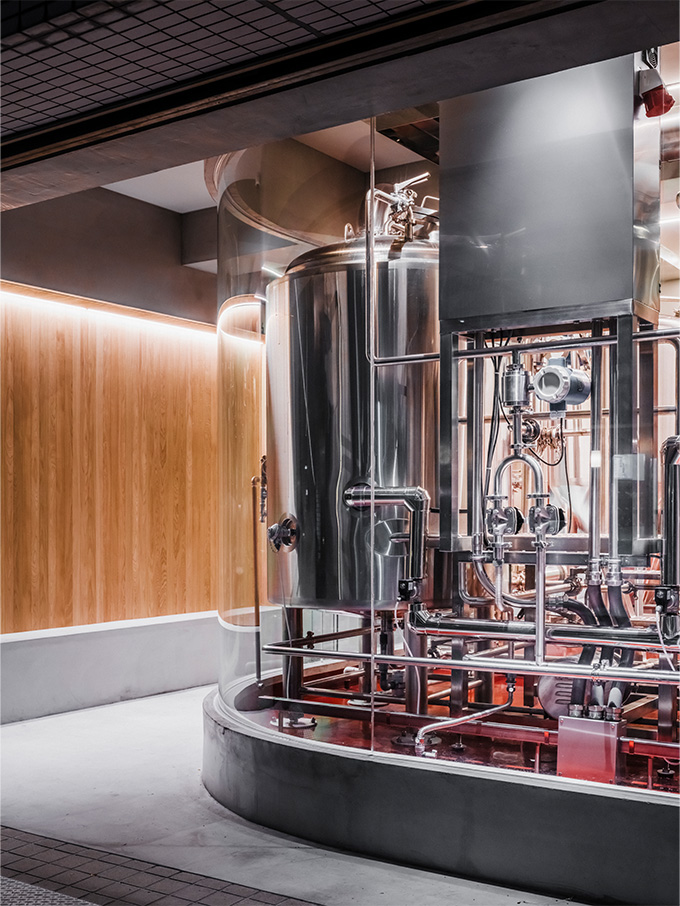 お客さまは迫力のある醸造設備を見ながら、まるで醸造室の中でビールを飲んでいるかのような感覚になることを想像してデザインしました。この醸造所が銭湯のように生活の中で気軽に立ち寄れる地域のハブとなり、この街の発展に寄与できる場所となることを願っています。