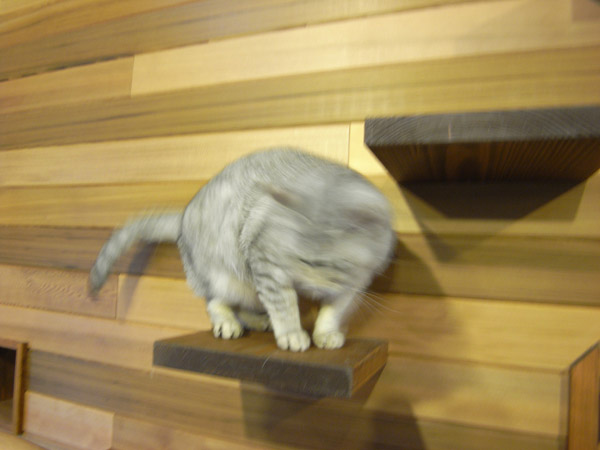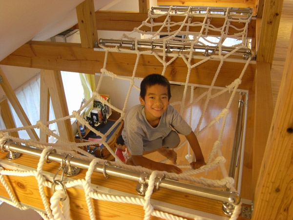 このお宅ネコが5匹います。お客さんに満足していただくには、ネコにとって快適な家でなくてはいけません。そこでこの家は、ネコと人が楽しく生活するための様々な工夫を凝らすだけでなく、私自身ネコの気持ちになって設計しました。