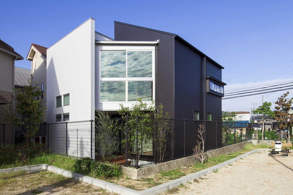 周囲の家は、公園からの視線を避けるためだと思うのですが、結構、公園に対して背を向けたように建っていました。そんな中、この家は公園との間に良好な関係を築くことで、心地よい家になっています。