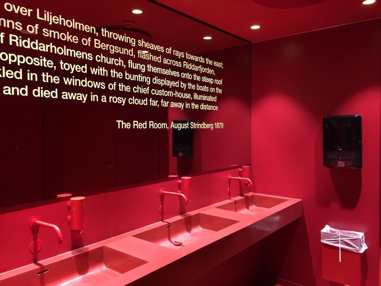 ホテルのフロントの横にあるトイレがお洒落で印象的でした。 スウェーデンのトイレは、駅などは、有料でかつ男女兼用。クレジットカードか小銭で数百円くらいを払い、回転の入口から入ります。