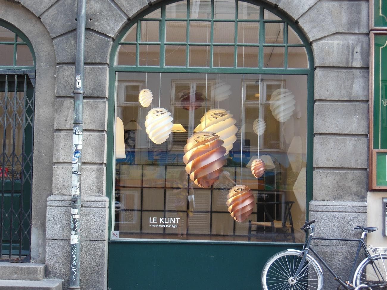 デンマークコペンハーゲンの中心部ストロイエにあるLE KLINTの店舗。多くのペンダントがかけられていてまるで美術品のよう。中でもスワールのデザインは、衝撃的。甘いもの好きの私は、ソフトクリームに見えました。