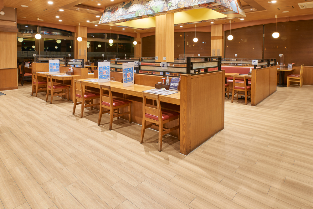 一方で、当社は1939年に日本初のユリア樹脂接着剤を発売して以来、近年では自動車や電子機器向けなど機能材料製品の拡充に注力するなど、さまざまな樹脂製品を開発してきました。その中で、繊維向けに開発した特殊なアクリル樹脂を使用することで、メラミン化粧板の伸び縮みを抑制し、メラミン化粧板の強さと塩ビ基材の施工性を兼ね備えた新たなフロア材の開発に成功しました。