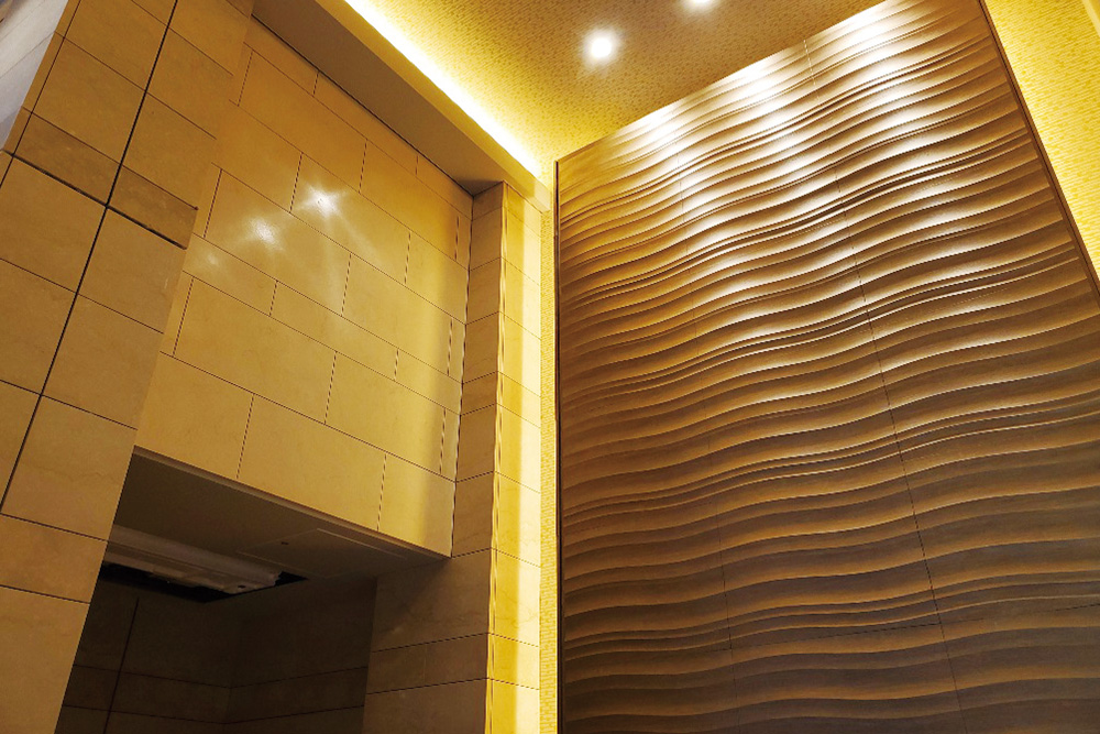 商業ビル、マンション、オフィスのエントランス等で活躍する不燃立体装飾パネル〈3DWALLISE〉が目指す、理想の室内空間